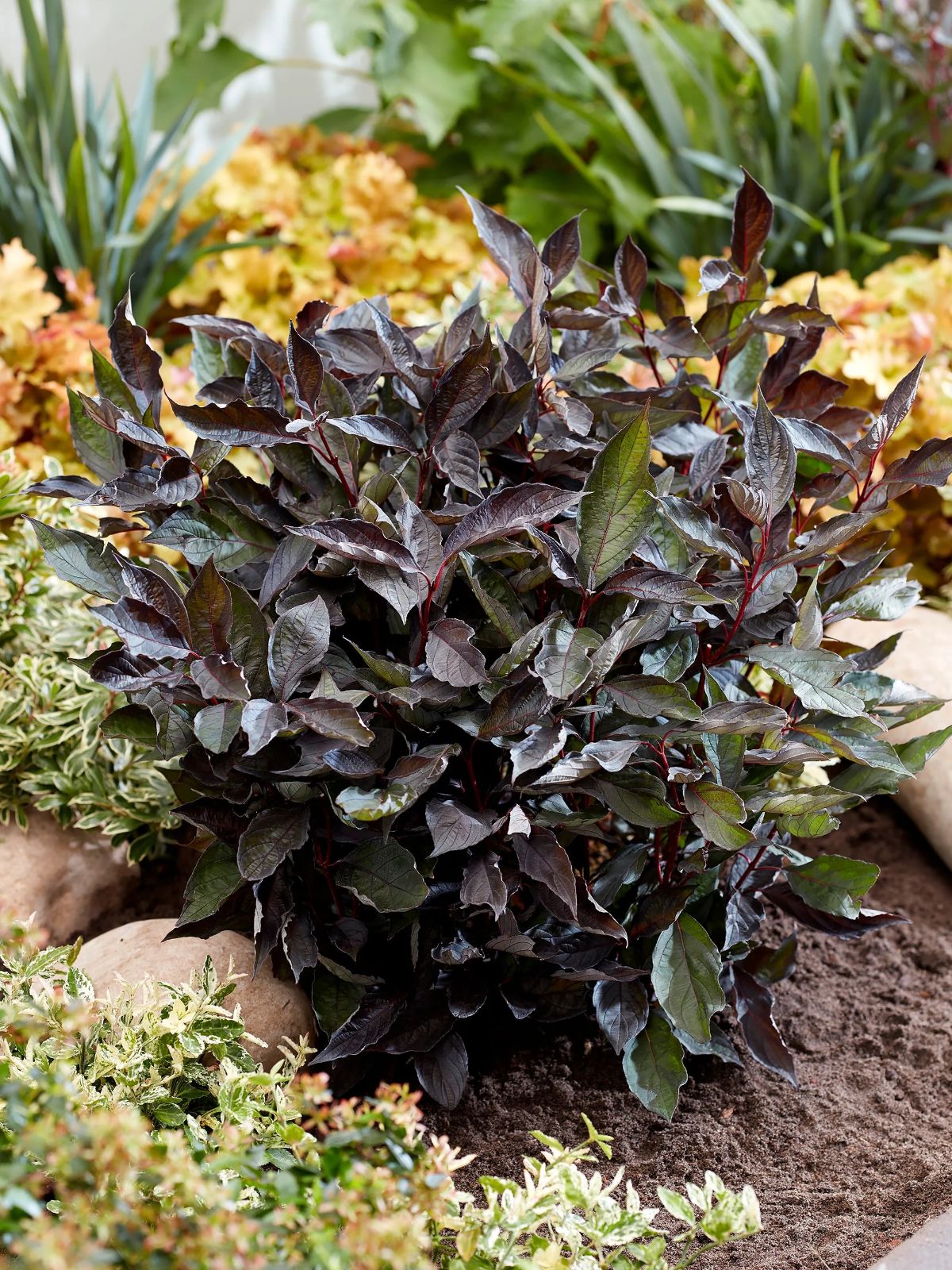 Izteiksmīgs krūms ar tumši violetām lapām rudenī un tumši sarkaniem zariņiem ziemā. Lieliski piemērots krāsaina dārza veidošanai visos gadalaikos.