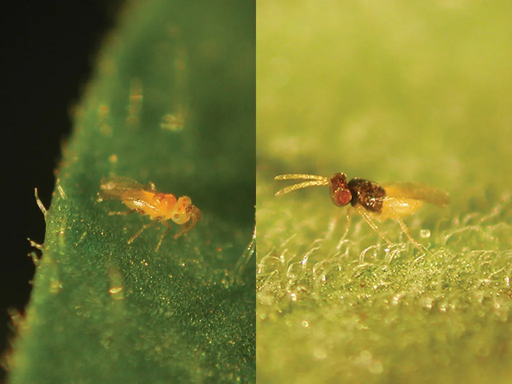Parazitē uz siltumnīcu baltblusiņas Trialeurodes vaporariorum un tabakas baltblusiņas Bemisia tabaci (priekšroku dodot siltumnīcu baltblusiņai). Encarsia formosa iedēj oliņu baltblusiņas kāpurā, no olas izšķīlies parazītlapsenes kāpurs barojas ar baltblusiņas kūniņas saturu. Eretmocerus eremicus dēj oliņu zem baltblusiņas kāpura, no olas izšķīlies parazītlapsenes kāpurs barojas ar baltblusiņas kūniņas saturu.