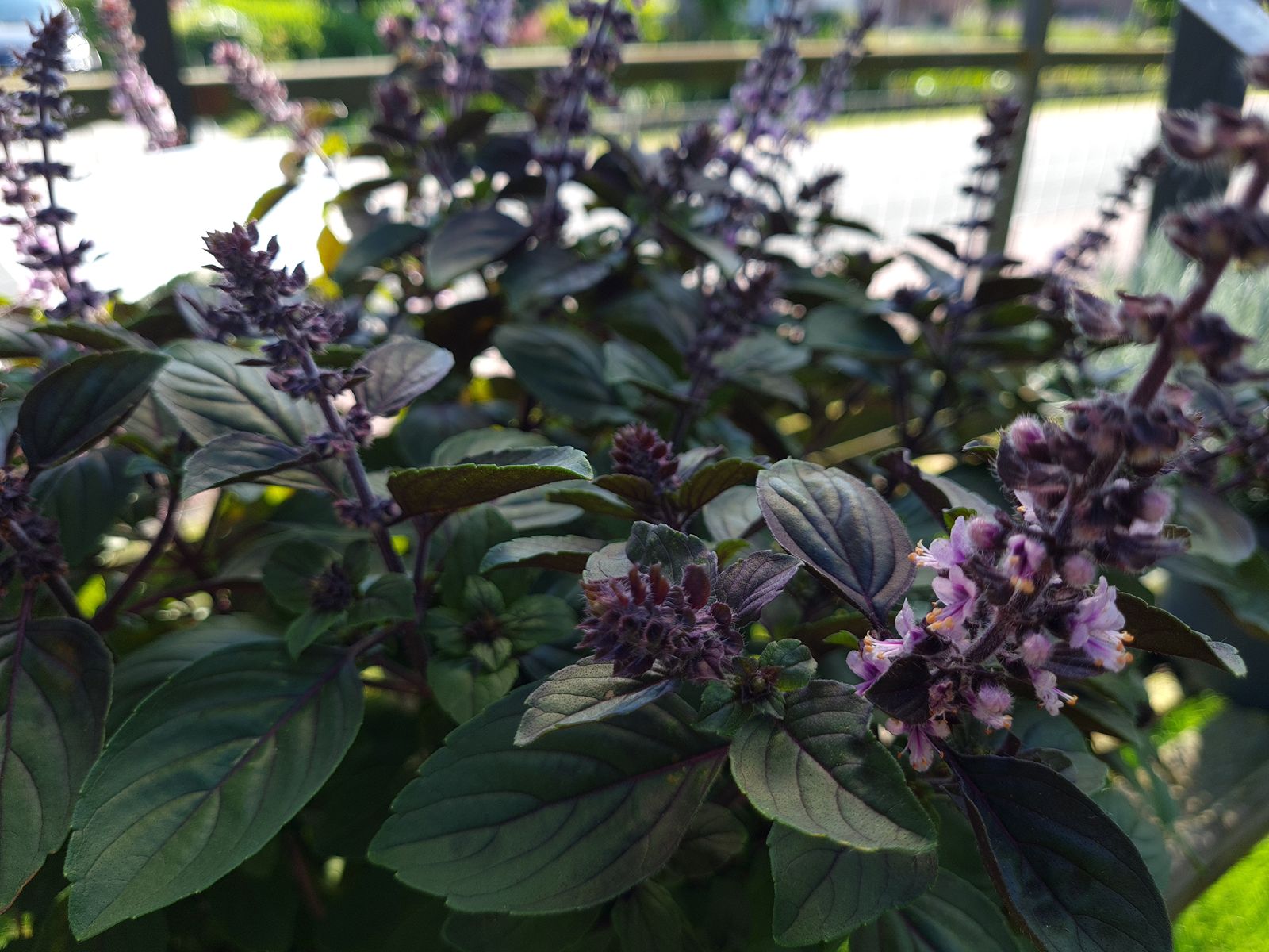 Dziļi violeta krāsa, rozā ziedu virtenes, pārsteidzoša bazilika garša.