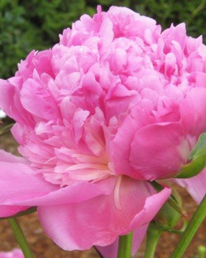 Vidēji vēlu ziedoša šķirne ar pildītiem, rozā ziediem kas saulē nedaudz balē. Patīkams aromāts. Saknes izmērs 05/08