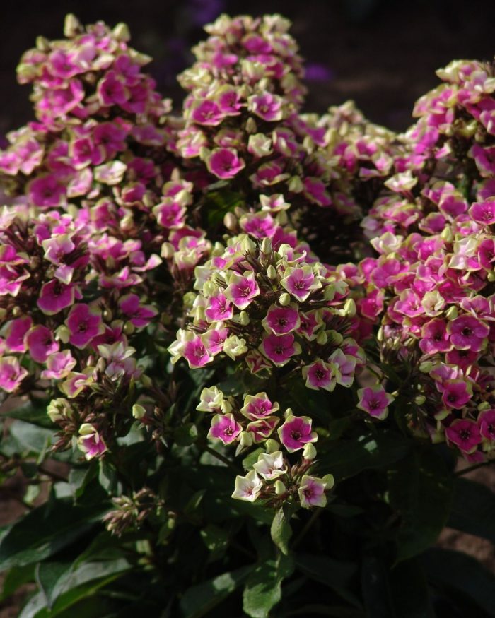 Divkrāsu floksis. Lielas ziedgalvas. Piemērots grieztajiem ziediem. Augums 50 cm.