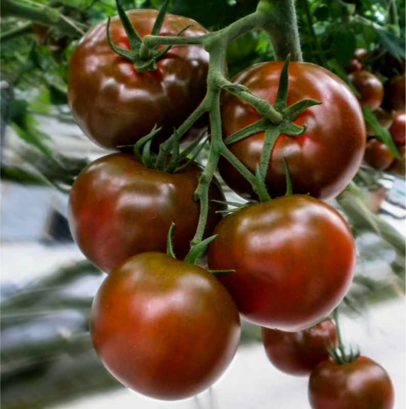 Šokolādes tomāti. Spēcīgi augoši, indeterminanti augi audzēšanai siltumnīcās. Ķekaros 4-6 tomāti, katra tomāta svars 250-300g. Augļos augsts likopēna (dabisks antioksidants) saturs. Nogatavojas vienmērīgi. Unikālas garšas īpašības! Pēc novākšanas ilgi saglabā kvalitāti.